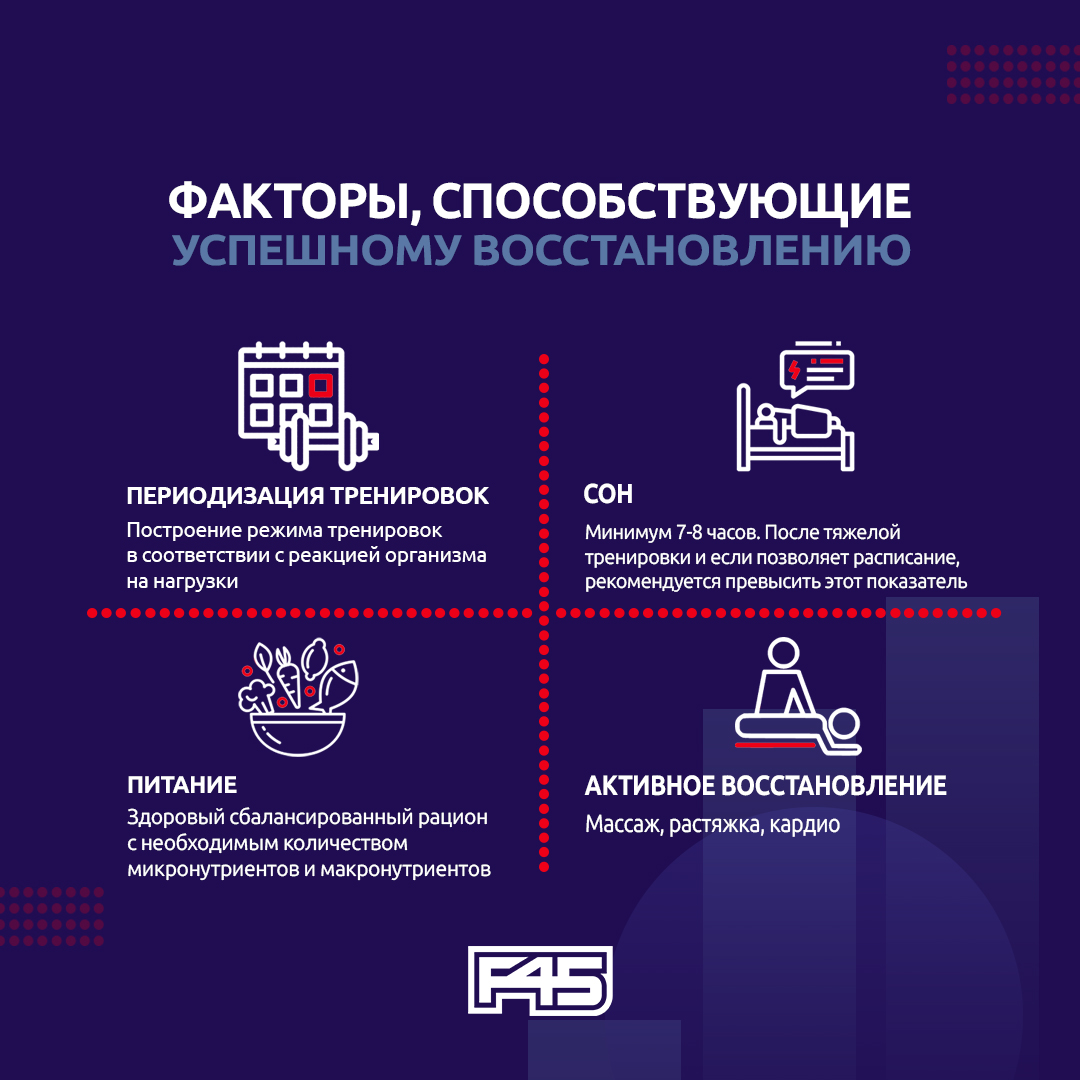 отдыхвосстановлениеперетренированностьтренировкисонмышцыпитаниегидратацияпсихологический отдыхтравмы